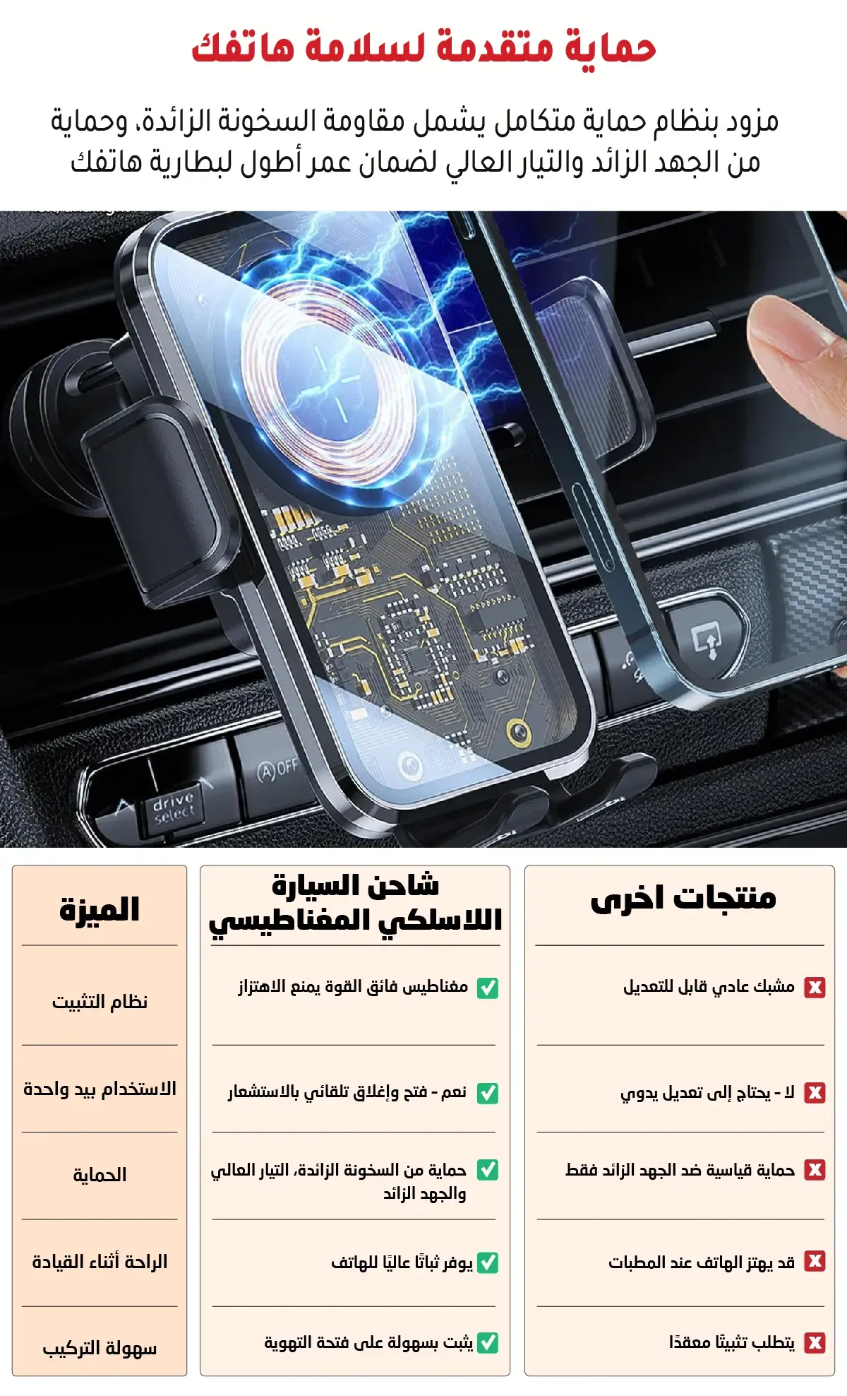 شاحن السيارة اللاسلكي شحن سريع وثبات قوي لرحلة مريحة