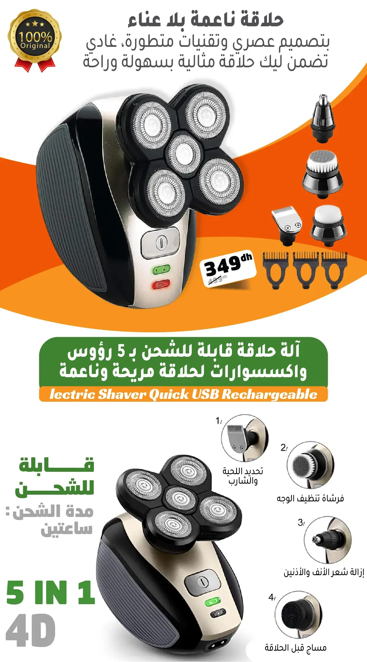 ماكينة حلاقة قابلة للشحن بـ 5 رؤوس غتهنيك من الحلاق