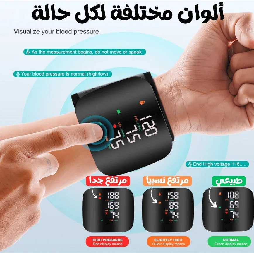 يتميز جهاز قياس ضغط الدم الإلكتروني للمعصم بتقنية متطورة تضمن قياسًا دقيقًا وموثوقًا في كل مرة. يقوم الجهاز ببناء وإطلاق الضغط تلقائيًا لتجنب أي خطأ أو انزعاج أثناء الاستعمال، مع خاصية الصوت الإرشادي باللغة الإنجليزية لتوجيه المستخدم خطوة بخطوة نحو قراءة صحيحة وآمنة.