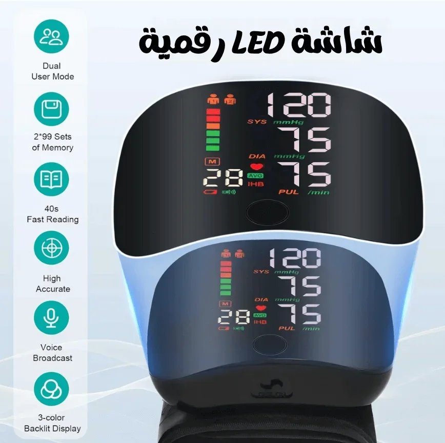 يوفر الجهاز قياسًا ذكيًا وآمنًا للضغط ونبض القلب في ثوانٍ فقط، بفضل التكنولوجيا المتقدمة التي تضبط الضغط تلقائيًا وتعرض النتائج بوضوح على شاشة مضيئة، مع إرشادات صوتية لتفادي أي خطأ في الاستعمال.